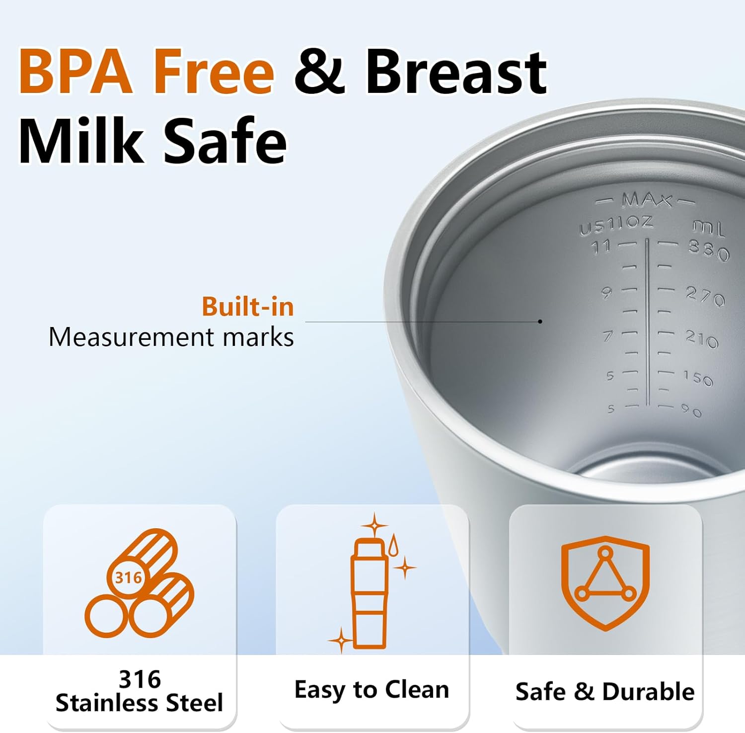 Made with 316 stainless steel inner liner and BPA-free plastic, ensuring no harmful chemicals leach into your baby’s milk.